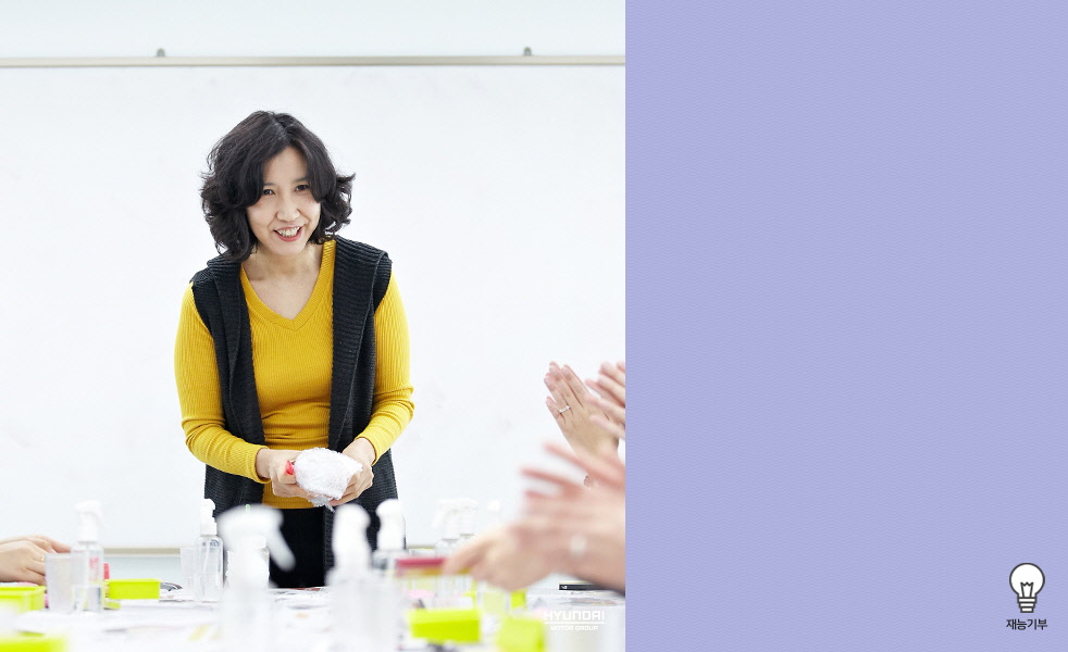 쉬는 시간을 활용해 학원에서 미리 만들어온 비누를 복지관에 기부한 유선정 님. '사랑의 비누'팀을 대표해 기프트카 셰어링의 주인공으로 선정된 소감을 그녀에게 들어보기로 했습니다.
