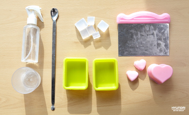 비누를 만드는 손은 물론 각종 도구를 소독하는 건 기본! 다음에는 크고 납작한 칼로 비누 베이스를 깍두기처럼 네모지게 자릅니다. 그렇게 유선정 님의 지도를 따라가다 보니, 어느새 예쁜 비누가 만들어졌습니다. 이제는 같은 방법으로 여러 개의 비누를 만들기만 하면 되는데요. 봉사자들 입장에서는 평소 접해보지 못한 수제 비누 만드는 법도 익히고 사회 기여도 할 수 있는 '일석이조 봉사활동'인 셈입니다.