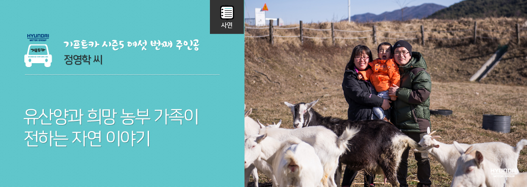 꿈을 그리는 사람만이 그 꿈에 가깝게 다가서게 됩니다. 정영학 씨가 그리는 꿈은 넓은 초원에서 유산양과 함께 숨 쉬며 자연과 하나 되는 삶입니다. 이 과정 속에서 어려움도 있었지만 가족의 사랑과 미래에 대한 희망은 꿈을 향한 동력이 되었습니다. 지리산 자락에 자리한 희망씨앗농장에서 영학 씨는 오늘도 내일도 노력을 멈추지 않을 것입니다.