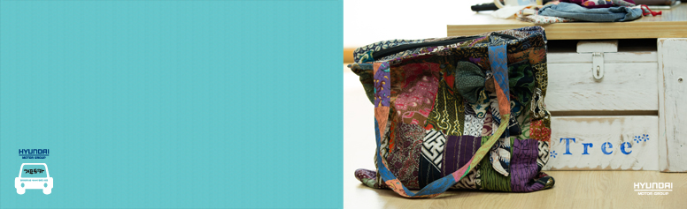 “버려지고 소외된 것들을 볼 때마다 늘 애틋한 마음이었어요. 모으고 모아 새로운 작품으로 변화시켰습니다. 현수막 천이 모여 가방이 되고, 상인들의 샘플지가 모여 패브릭 쿠션이 됐죠. 재활용의 개념이 뚜렷한 리사이클링보다 한 단계 진화한 업사이클링으로 보시면 돼요. 아이디어가 접목돼서 전혀 새로운 제품이 탄생하거든요.”