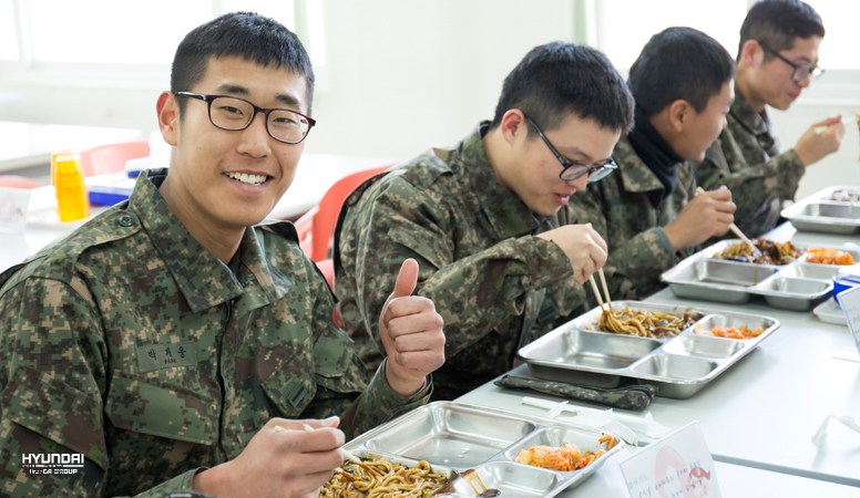 짜장면이 완성되고 점심시간이 되자 장병들이 물밀 듯이 밀려옵니다. 특별한 점심 메뉴가 나온다는 사실에 장병들은 기대감에 부푼 얼굴로 식당에 들어선 장병들. ‘짜장면’을 군대에서 먹게 될 줄은 몰랐다며 장병들의 얼굴에는 미소가 한 가득입니다.