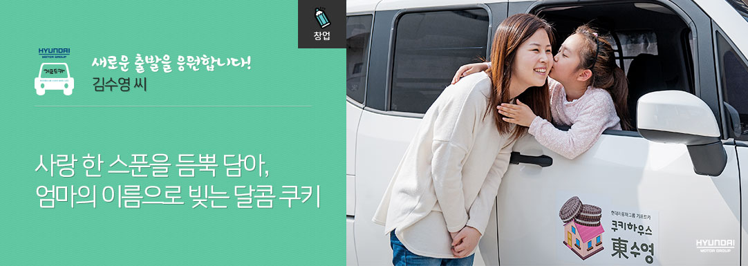 엄마(수영)와 딸(동연)이 함께 만들어가는 쿠키하우스. 각자의 한글과 한자 이름을 딴 ‘쿠키하우스 東수영’이라는 상호에 녹아있는 뜻입니다. 창업교육 이후 부족한 부분을 채우고 발전시키며 수영 씨는 분주한 하루하루를 보내고 있습니다.