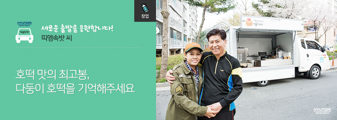 차를 보기 전까지도 믿기지 않고 얼떨떨했어요. 저희는 장사에 필요한 다용도탑차를 받았는데, 뒤에 탑이 있으니 우선 든든해요. 승차감은 말할 것도 없고요. 필요한 설비를 갖추고 물품을 구매하고 있는데 조만간 완성될 것 같아요. 가족들 모두 한마음으로 기뻐하고 있고 특히 남편은 헤어스타일도 단정하게 바꾸면서 새 출발을 준비하고 있어요. 반듯한 모습과 새로운 마음가짐으로 시작하자고 함께 다짐했어요.