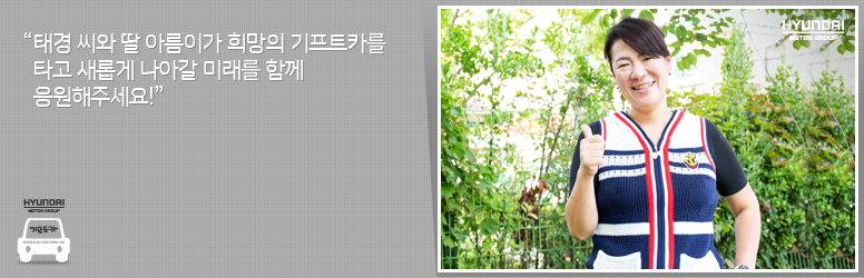 다가올 미래를 말하는 태경 씨 입가에 어느새 미소가 번졌습니다. 태경 씨와 딸 아름이가 희망의 기프트카를 타고 새롭게 나아갈 미래를 여러분께서도 함께 응원해주세요!