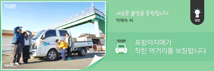 맛깔 나는 포항 특산물을 정직한 가격에 선보이고 있는 7남매 엄마 혜숙 씨. 포항 전 지역은 물론 전국으로 판로를 확대하고 싶다는 혜숙 씨에게 기프트카는 든든한 다리가 되어주었습니다. 가족을 생각하는 마음으로 믿고 먹을 수 있는 건강한 먹거리를 준비하겠다는 혜숙 씨의 목소리에 귀 기울여봅니다.