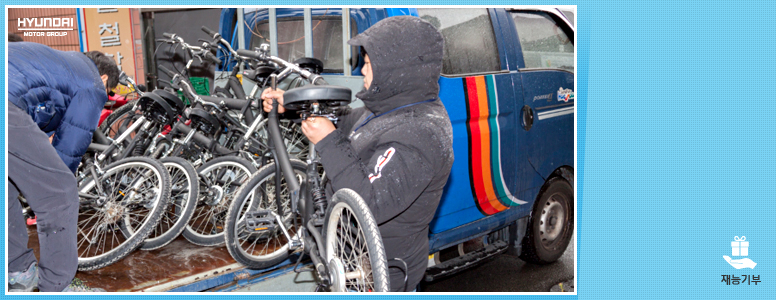그러나 프로젝트 진행 중 한 가지 문제에 부딪혔습니다. 한정된 프로젝트 예산으로 차량을 몇 대씩 빌리기가 어려웠던 까닭입니다. 스무 대나 되는 자전거를 싣고, 4인방이 부산까지 이동하려면 용달차 한 대만으로는 부족했던 상황. 차량 대여에 예산을 쓰고 나면, 자전거 수리에 사용할 부품 구입비를 줄여야 했습니다. 더 좋은 자전거를 기증하고 싶었던 그들에게 ‘기프트카 셰어링’이 눈에 들어왔습니다. ‘기프트카 셰어링’을 통해 차량과 주유비, 활동비를 지원받은 덕분에 4인방은 이동에 대한 걱정 없이 새 부품을 사용해 자전거의 완성도를 높일 수 있었습니다.
