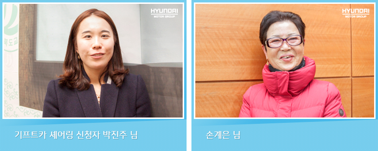 기프트카 셰어링 캠페인에 보여주신 높은 관심과 참여에 감사드립니다. 2015년 11월부터 진행된 기프트카 셰어링 신청이 종료되었습니다. 행복하고 뜻깊은 여행에 기프트카를 초대해 주신 주인공분들께 감사 인사를 드립니다. 아직 주인공들의 이야기는 끝나지 않았습니다. 앞으로 소개해드릴 셰어링 주인공들의 이야기에도 많은 관심 부탁드립니다.