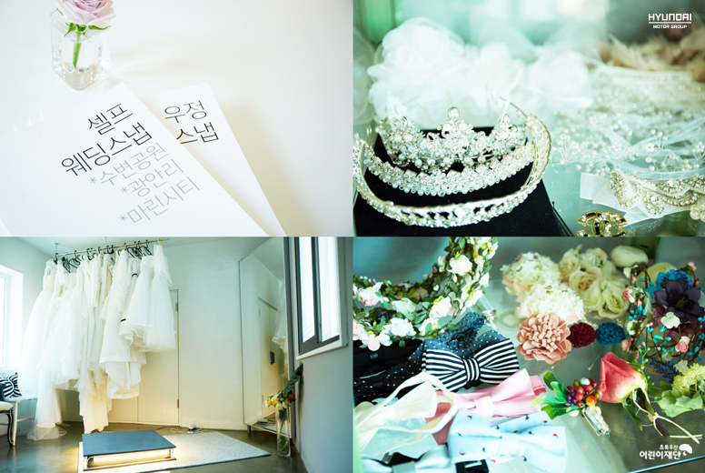 보통 웨딩스냅을 준비하면 촬영, 의상, 소품 등 전문 업체를 일일이 알아보고 골라야 하는데, 이게 쉬운 일이 아니거든요. 저희는 그런 번거로움을 해소하기 위해 촬영을 예약하시면 나머지는 저희가 다 준비해드리려 해요. 과거 쇼핑몰에 근무하며 쌓아온 안목으로 고른 드레스와 소품들을 무료로 대여해 드릴 예정이에요. 또 개인 차량이 없으신 고객을 위해 직접 차량으로 픽업, 이동 서비스까지 제공하고요. 서브 작가인 남편이 촬영 비하인드 컷, 메이킹필름 등을 서비스로 제작해 드릴 계획이에요.