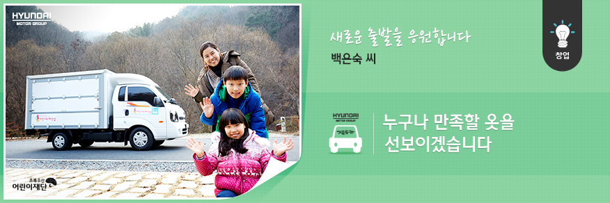 기프트카를 통해 의류 판매업에 도전한 은숙 씨. 뛰어난 눈썰미와 센스로 엄마와 아이가 모두 좋아할 옷을 선보이려고 합니다. 오늘도 엄마의 마음을 담은 옷을 준비하기 위해 노력하고 있는 '준비된 창업자' 백은숙 씨를 지금 만나봅니다.