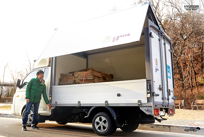 차량에 지붕이 있어서 비 오는 날에도 안심하고 배송을 할 수 있다는 점이 가장 좋아요. 종이로 만든 지대는 물에 젖으면 팔지도 못하고 바로 폐기해야 하거든요. 이제 차량 내부에 어느 정도 제품을 적재할 수 있어서 정말 좋아요.