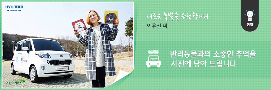 유진 씨는 기프트카를 만난 후로 미래를 그리는 일이 즐거워졌습니다. 맘껏 꿈을 펼칠 수 있게 도와줄 든든한 버팀목이 생긴 덕분이라고 합니다. 기프트카와 함께 '반려동물 전문 스튜디오'라는 자신만의 꿈을 이뤄나갈 유진 씨를 지켜봐 주세요!