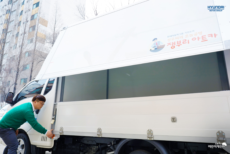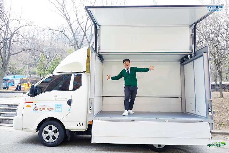 제 기프트카는 양쪽 차량 벽면이 열리는 윙바디 차량인데요, 날개를 펴듯 좌우 벽면을 위로 젖히면 내부 전시 공간이 훤히 보여 많은 사람들의 관심을 끌 수 있을 거 같아 기대됩니다. 그리고 차량 적재 공간이 무척 넓어 부피가 큰 제품도 맘껏 실을 수 있다는 점이 마음에 듭니다.