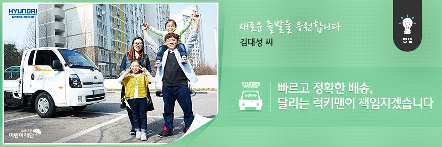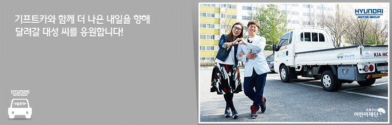 김대성 씨는 기프트카가 생긴 덕에 한없이 높아 보였던 창업의 벽을 단숨에 넘을 수 있었다고 말합니다. 먼 거리에도 끄떡없는 튼튼한 기프트카는 대성 씨에게 큰 힘이 되어주고 있습니다. 기프트카와 함께 새로운 인생에 첫발을 내디딘 대성 씨를 지금 만나봅니다.