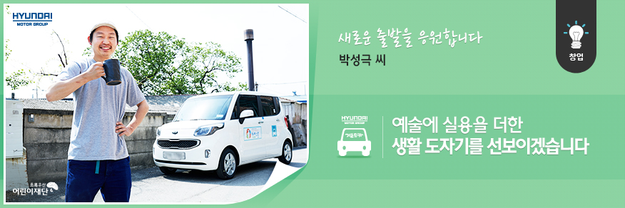 사업에 활로를 마련해줄 새 차가 생겨서 꿈만 같습니다. 기프트카의 주인이 되어 벅찬 기쁨과 동시에 책임감도 느낍니다. 도자기를 창업 아이템으로 내세워 기프트카 캠페인의 주인공이 된 건 제가 처음이라고 들었거든요. 기프트카와 함께 이동식 도자기 상점 창업에 성공해 도자기 산업의 새로운 희망이 될 수 있도록 최선을 다하겠습니다.