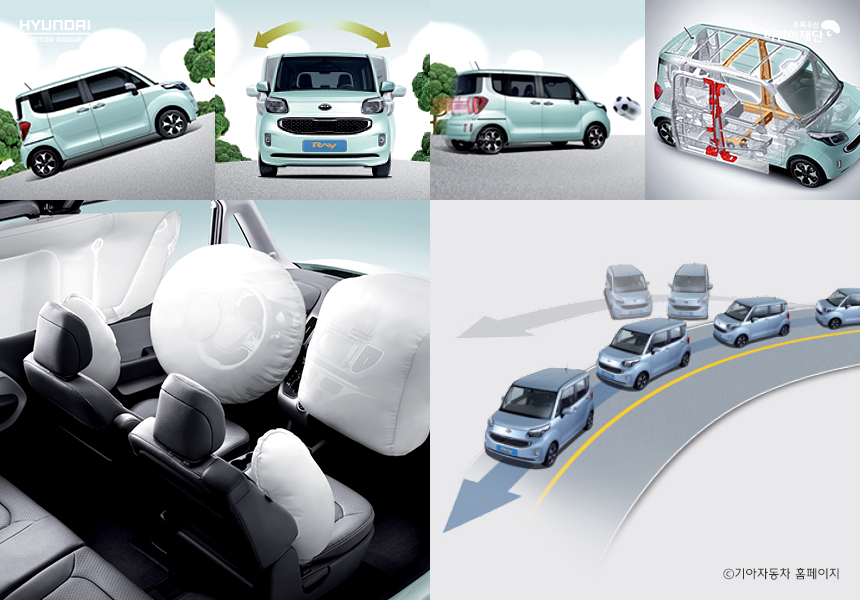 또한 견고하고 단단한 프레임뿐 아니라 차량이 불안정한 상황에서 차체 자세 제어장치(ESC), 속도감응형 전동식 파워 스티어링(MDPS), 경사로 밀림 방지장치(HAC), 차량 선회 시 발생하는 차량 기울어짐을 최소화하는 ROM 적용, 급제동 시 운전자의 제동력을 보조해주는 BAS 등의 안전 시스템을 통해 운전자와 탑승자, 보행자 그리고 다른 차량의 운전자들에게까지 최고의 안전성을 제공하고 있습니다.