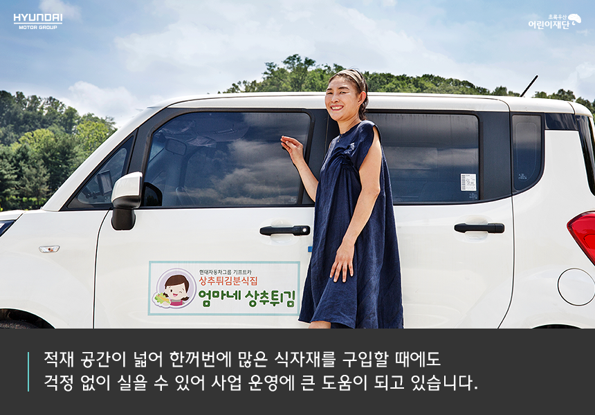 누군가에겐 귀여운 경차일 수 있겠지만, 현미 씨에는 세상 든든한 친구입니다. 앞으로도 ‘엄마네 상추튀김’과 오래도록 함께 할 현미 씨의 기프트카. 오늘도 기프트카는 현미 씨와 현미 씨의 가족을 위해 꿈을 싣고 힘차게 달립니다.