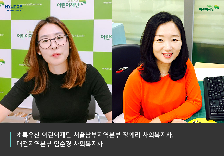 장예리 사회복지사(이하 장예리): 저는 초록우산 어린이재단 서울남부지역본부 복지사업팀에서 근무하고 있습니다. 서울 강남구, 강동구, 광진구, 서초구, 성동구, 송파구 6개구를 담당하며 아동의 건강한 성장을 위해 지원하는 일을 하며, 도움이 필요한 아동이나 가정을 발굴하는 일도 담당하고 있어요.