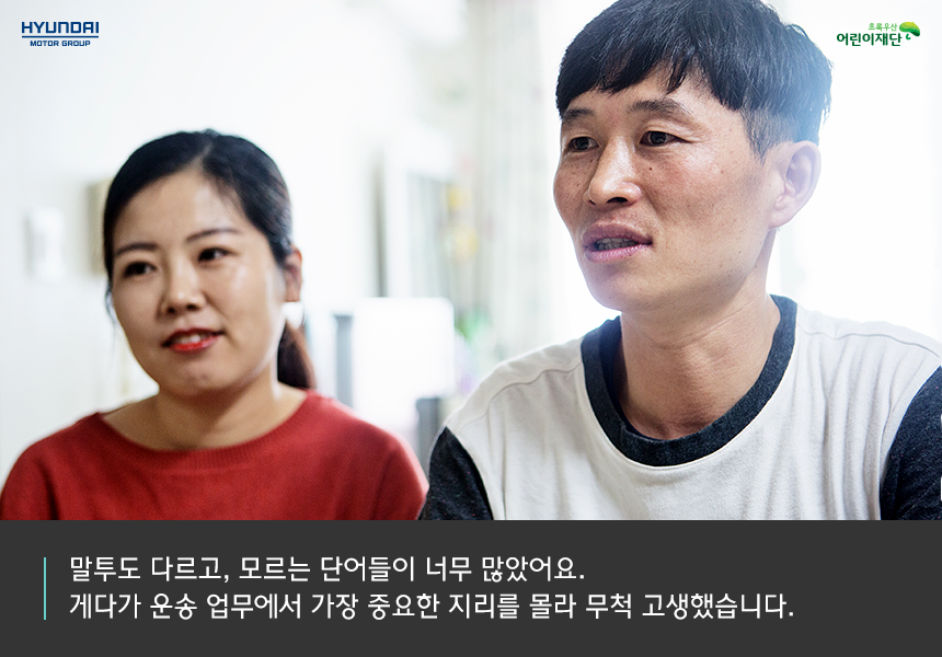 우선 의사소통이 문제였습니다. 말투도 다르고, 모르는 단어들이 너무 많았죠. 게다가 운송 업무에서 가장 중요한 지리를 몰라 무척 고생했습니다. 내비게이션이 있었지만 익숙하게 사용하기까지 많은 시간이 걸렸습니다. 철선 씨는 이를 극복하기 위해 회사에서 매일 새벽 5시부터 업무를 시작했습니다. 점점 일에 자신이 생겼고, 곧 ‘성실한 사람’이라는 칭찬도 듣게 되었습니다.