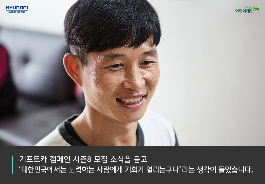 기프트카 캠페인 시즌 8 주인공으로 선정되었다는 소식을 들은 후, 철선 씨의 가족은 눈물을 글썽였습니다. 이렇게 고마운 일이 또 있겠냐며, 더는 가슴 졸이지 않고 살 수 있을 것 같다고 말이죠. 빚 없이 내 차로 달걀을 운반할 수 있으니 이제 마음의 여유를 가지고 단골 확보에 집중하겠다는 포부도 밝혔습니다.
