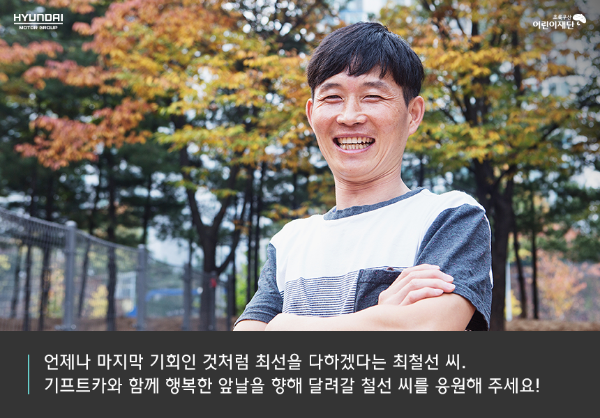 기프트카와 함께 언제나 마지막 기회인 것처럼 최선을 다해 고객들과의 약속을 지키고, 나아가 가족을 지키겠다는 다짐을 해보는 철선 씨. 당당한 대한민국 국민으로서 가족의 행복을 위해 살아갈 철선 씨 가족의 앞날을 응원합니다.