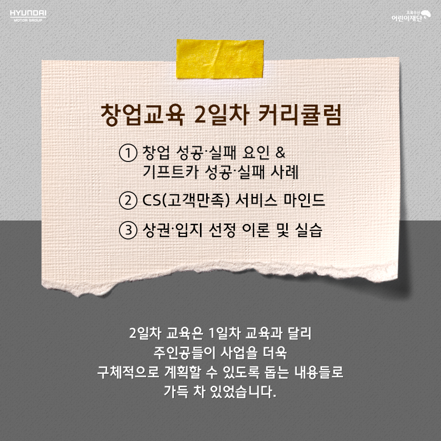시즌8 기프트카 시즌8 첫 번째 주인공들과 함께 한 창업교육 돌아보기 │ 2일차 창업교육에서는 어떤 교육들을 받게 되는 것일까요? 첫 번째 주인공들과 함께 한 창업교육 돌아보기를 통해 소개해드립니다! 2017-12-22 50916 1 #기프트카 #기프트카캠페인 #기프트카시즌8 #시즌8 #창업교육 #창업교육현장스케치 #창업교육소개 #창업교육2일차 #현대자동차그룹 #현대자동차그룹사회공헌 목록