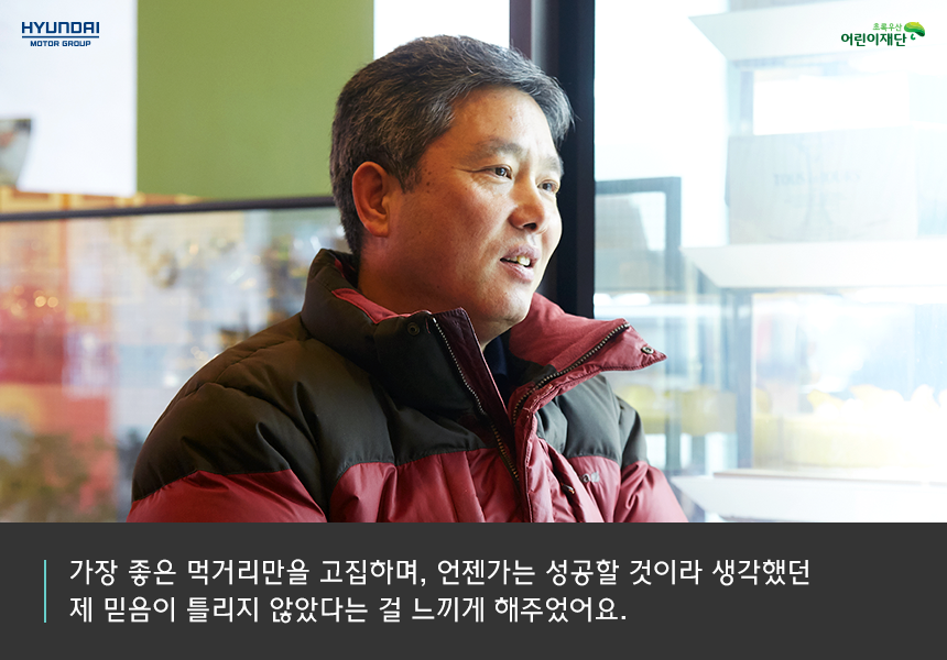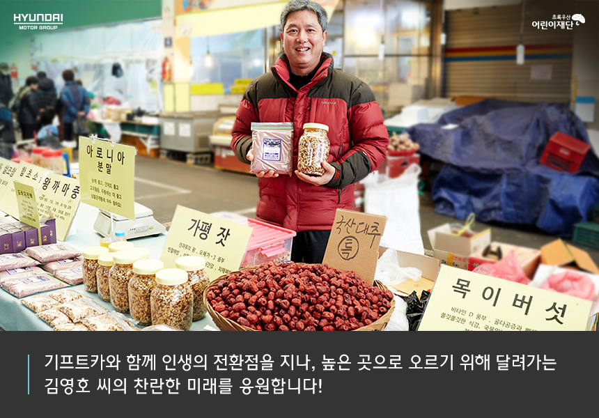 일단 매출이 많이 올랐습니다. 몇 배로 뛰었죠. 이제는 장거리도 걱정 없이, 더 많이 다닙니다. 그러다 보니 거래처도 많아졌습니다. 품목도 기본 아이템인 표고버섯부터 아로니아, 목이버섯, 쌀 조청, 소금, 잣, 감자과자 등으로 많이 늘었고요. 아이들에게 못 줬던 용돈도 줄 수 있게 됐죠. 전반적으로 여유가 생겼어요.