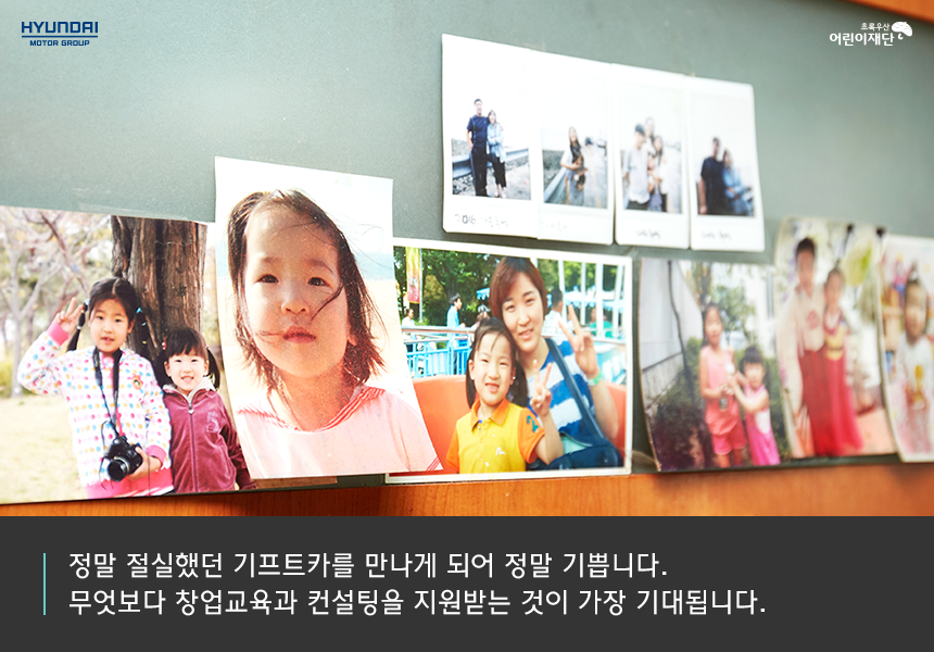 직원을 둘 정도로 가게를 키우는 것이 목표라는 유연 씨, 앞으로도 기프트카와 함께하며 여유가 생길수록 주변을 더 돌아보고 싶다고 합니다. 미처 챙기지 못했던 사랑하는 가족도, 고마움을 보답하지 못 했던 지인들도, 도움이 필요한 주변 사람들도 말입니다. 이런 유연 씨의 따뜻한 마음은 한 겨울 추위도 녹일 듯 한데요. 행복한 미래를 향해 힘차게 달려갈 유연 씨를 응원합니다!