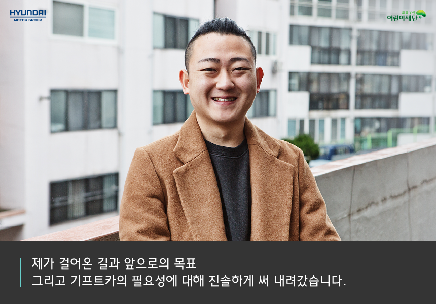 좋아하는 일을 하며 사는 것이 얼마나 큰 축복인 줄 알기에 더욱 열심히 하겠다는 제명 씨. 어떤 어려움이 닥쳐와도 이겨낼 것 같은 든든함을 엿볼 수 있었습니다. 야심 찬 꿈을 향해 쉬지 않고 달려갈 제명 씨의 기프트카를 응원해주세요!