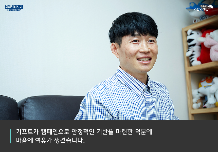기프트카가 없었다면, 차량을 마련하기 위해 빚을 져야 했을 겁니다. 경제적으로는 물론 정서적으로도 큰 압박이 되었겠죠. 열심히 일해도 좀처럼 나아지지 않은 형편에 지쳐가던 상황이었거든요. 그런데 기프트카 캠페인으로 안정적인 기반을 마련한 덕분에 마음에 여유가 생겼습니다. ‘뭐든 해낼 수 있다’는 긍정적인 마음과 열정으로 하루하루를 채워가고 있습니다.