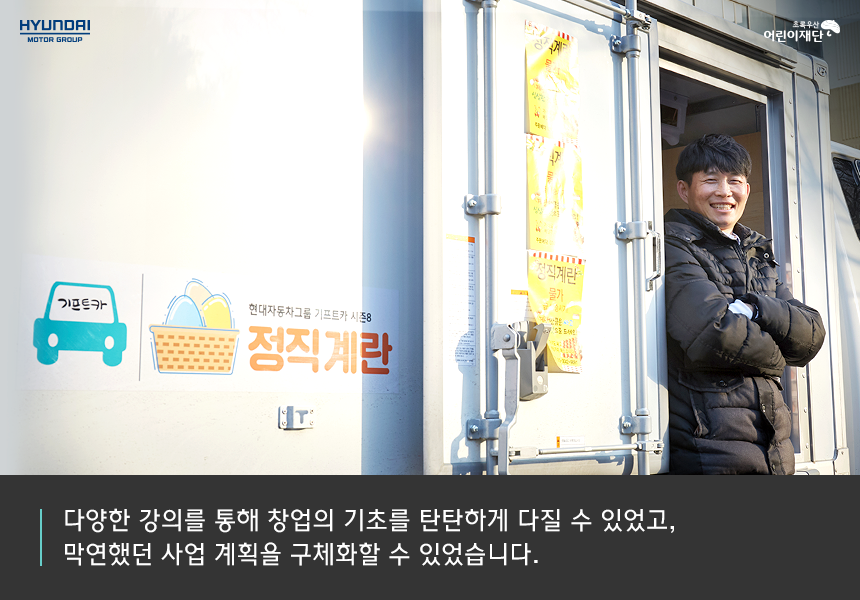 3년 전, 북한을 떠나온 최철선 씨는 계란 유통업체에 근무하며 새 삶의 첫 발을 내디뎠습니다. 남들보다 성실하게 일하며 노하우를 쌓은 철선 씨는 계란 유통사업을 준비했는데요. 계란을 신선하게 운반할 차량이 없어 고민하다 기프트카 캠페인의 문을 두드렸고, 창업의 꿈을 이뤘습니다. 기프트카 캠페인과 함께 눈부신 제2의 인생을 살고 있다고 말하는 철선 씨를 만나봅니다.