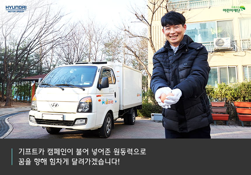 제게 기프트카 캠페인은 ‘운명의 시작점’입니다. 기프트카 캠페인 덕분에 꿈꾸던 사업을 시작할 수 있었고, 새로운 목표도 갖게 되었거든요. 저는 요즘 제2의 인생을 사는 것 같습니다. 기프트카 캠페인이 불어 넣어준 원동력으로 꿈을 향해 힘차게 달려가겠습니다!