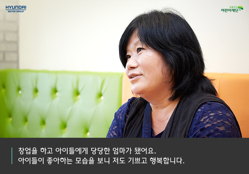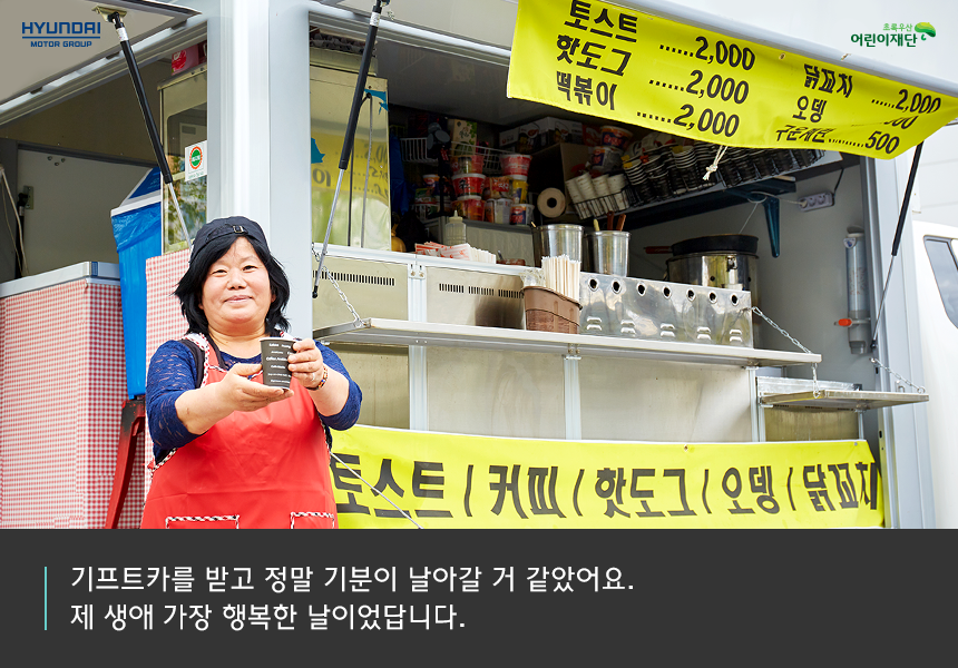 기프트카 캠페인을 통해 창업을 하고 아이들에게 당당한 엄마가 됐어요. 그동안 형편이 어려워 아이들에게 경제적 지원을 해주기가 쉽지 않았어요. 엄마로서 그 부분이 늘 미안하고 속상했죠. 덕분에 경제활동을 시작하면서 아이들이 원하는 것들을 해줄 수 있게 되었어요. 아이들이 좋아하는 모습을 보니 저도 기쁘고 행복합니다.