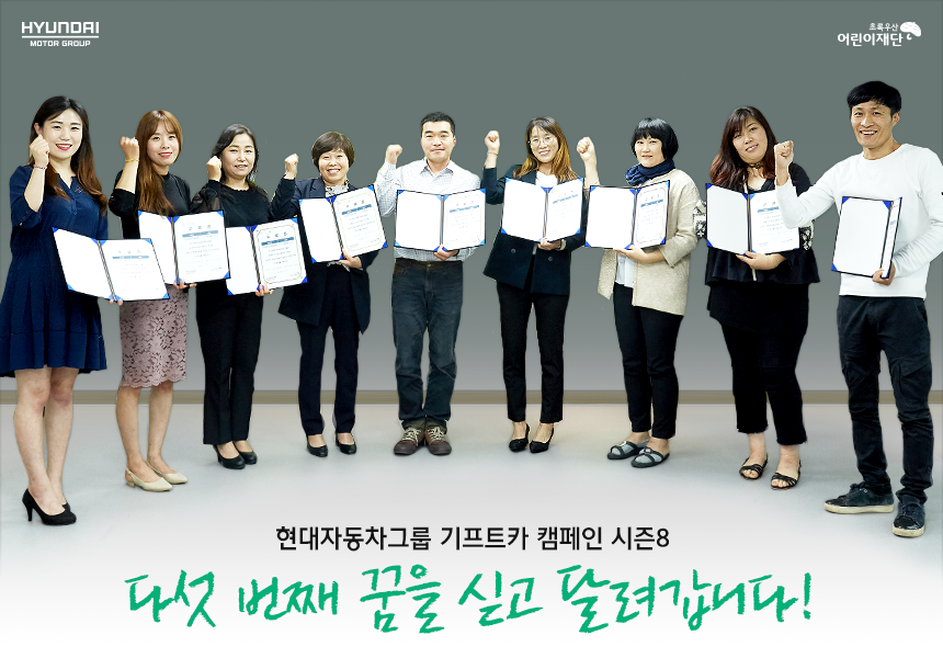 현대자동차그룹과 초록우산 어린이재단이 함께 하는 기프트카 캠페인 시즌8, 그 대미를 장식 할 마지막 주인공들을 소개합니다. 이번에는 무려 9명의 주인공이 탄생해 여느 때보다 활기찼는데요! 새 출발의 희망으로 가득 찼던 축하행사 현장의 분위기도 생생하게 전해드립니다.