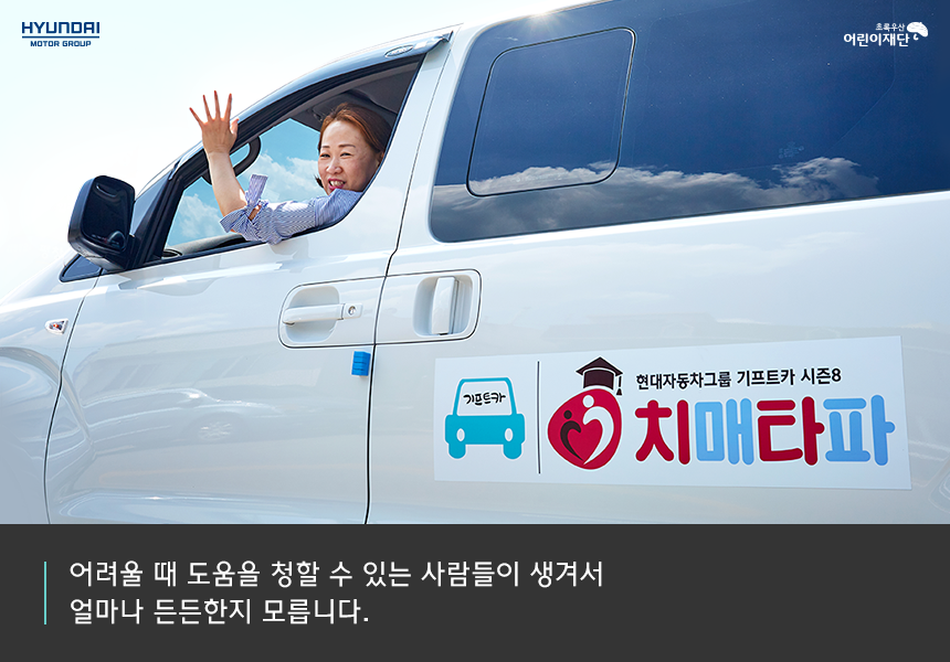 연락을 받고 자동차 대리점에서 차를 받아 직접 운전해 돌아오는데도 ‘이게 정말 내 차인가?’하는 생각이 들었어요. 며칠이 지나 차량에 ‘치매타파’라는 상호를 래핑하고 나서야 실감이 났죠. 정말 기쁘더라고요. 제 상호가 큰 차량에 떡하니 붙어있는 걸 보니 책임감도 솟아올랐지요.