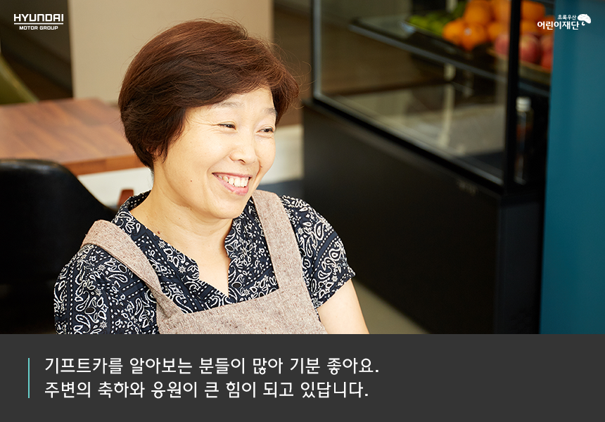 주변에서 축하 인사를 정말 많이 받았습니다. 심지어 모르는 분들도 차량에 붙어 있는 기프트카 캠페인 로고를 알아보시곤 축하해주셨어요. (웃음) 하루는 주유소에 갔더니 “TV에서만 보던 기프트카를 실제로 만나 신기하다. 진심으로 축하 드린다.”라며 먼저 말을 걸어주시더라고요. 얼마 전엔 매장 공사를 맡아주시던 사장님이 축하한다면서 비용을 깎아주시기도 했어요. 매일 많은 분들에게 따뜻한 응원과 격려를 받으며 큰 힘을 얻고 있습니다.