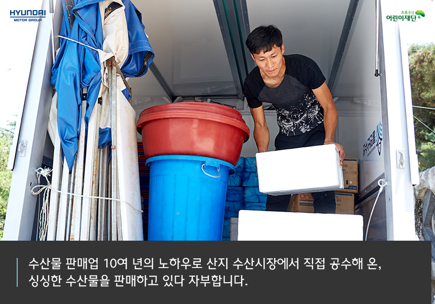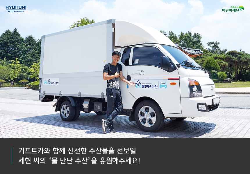 수산물 판매업 10여 년 경력을 자랑하는 유세현 씨는 사업에 꼭 필요한 차량이 없어 고민하다 기프트카 캠페인의 문을 두드렸습니다. 가능성을 인정 받아 당당히 기프트카의 주인공이 된 세현 씨는 창업의 꿈을 이뤄 ‘물 만난 수산’을 운영하고 있습니다. 기프트카로 싱싱한 생선, 새우, 조개 등을 직접 공수해 판매하고 있는 유세현 씨를 지금 만나봅니다.
