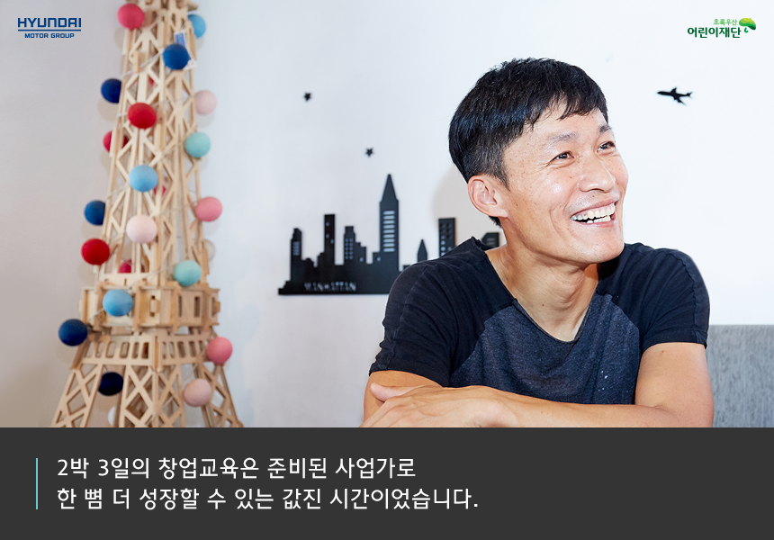 솔직히 2박 3일 동안 창업교육을 들어야 한다는 얘길 듣고 막막했어요. 어렸을 때부터 공부를 싫어했거든요. (웃음) 그런데 막상 교육을 들어보니 조금도 지루하지 않았어요. 강사님이 알아듣기 쉽고 재미있게 설명해주시더라고요. 특히 강사님께서 생생한 창업 도전기를 들려주실 때에는 시간 가는 줄 모르게 이야기에 집중하고 있는 저를 발견했죠. 수업이 끝나고 나니 ‘나도 열심히 해야겠다’는 생각이 절로 들더군요. 제게 좋은 자극과 동기부여가 됐죠. 마지막으로 1:1 컨설팅을 통해 꼼꼼히 사업 계획을 점검할 수 있어 큰 도움이 됐습니다.