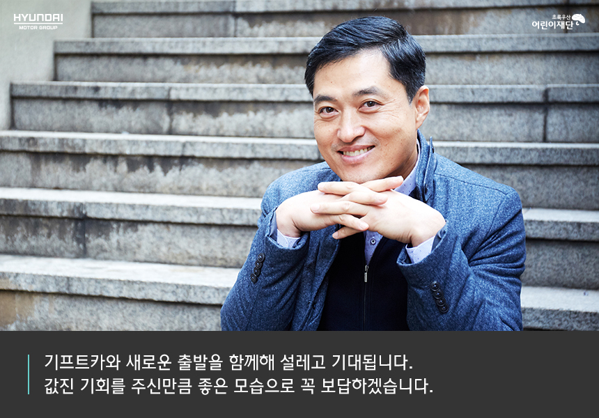 처음에 선정 소식을 듣고 한동안은 멍했습니다. 그토록 바라던 기프트카 캠페인의 주인공이 되다니 믿기지 않았죠. 얼떨떨한 기분으로 가족들에게 소식을 전했는데, 다들 정말 기뻐하고 좋아했습니다. 그런 가족들의 모습을 보니 그제야 실감이 나면서 감동이 벅차올랐습니다. 이 자리를 빌려 꿈을 이룰 기회를 주셔 감사하다는 말씀을 드립니다.