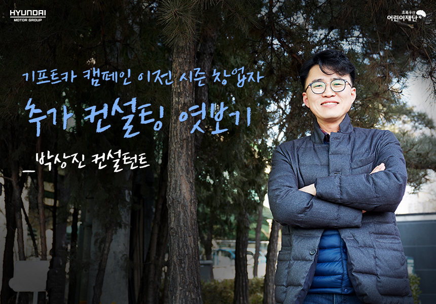 이번 추가 컨설팅을 맡게 된 ‘컨설팅 진’ 대표 박상진입니다. 현재 서울신용보증재단, 남북하나재단, 열매나눔재단 등 여러 곳에서 강사, 컨설턴트, 심사위원으로 활발히 활동하고 있습니다. 기프트카 캠페인과의 인연은 2011년부터 시작되었는데요. 시즌2부터 지금의 시즌9까지 기프트카 캠페인 주인공들의 창업을 돕고 있습니다.