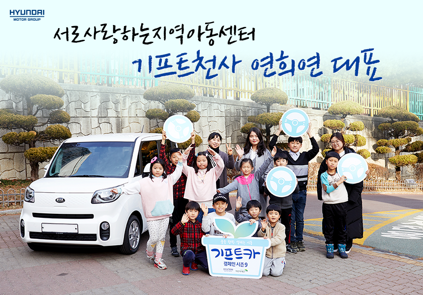 현대자동차그룹이 기프트카 캠페인 시즌9을 맞아 새롭게 선보인 ‘우리동네 기프트카 캠페인’은 지역아동센터 아이들의 꿈과 희망을 응원하기 위해 차량을 지원하는 사회공헌활동입니다. 우리동네 기프트카 캠페인은 지역아동센터 10곳을 선정해 기프트카를 선물했습니다.