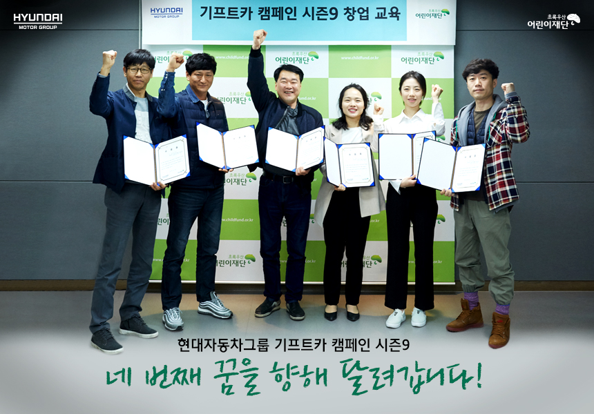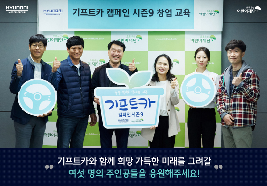 현대자동차그룹과 초록우산 어린이재단이 함께하는 기프트카 캠페인 시즌9의 네 번째 주인공들을 소개합니다. 새로운 출발을 향한 꿈과 열정을 보여준 여섯 분이 새롭게 기프트카와 인연을 맺게 되었는데요. 기프트카 캠페인과 함께 인생 2막을 준비하는 주인공들의 이야기와 웃음 가득했던 수료식 현장을 소개해 드리겠습니다.