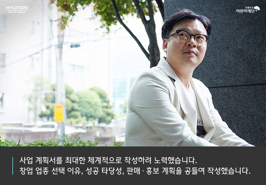 면접 심사 전에는 사업 계획서를 찬찬히 읽어보며 예상 질문에 대비해보기도 했습니다. 면접 당일, 무척 떨려 긴장된 얼굴로 면접장에 들어섰는데요. 면접관분들이 먼저 농담 섞인 질문을 해주신 덕분에 긴장이 확 풀렸습니다. 그 뒤론 자신 있게 사업 성공 가능성과 남다른 창업 의지를 표현했습니다.
