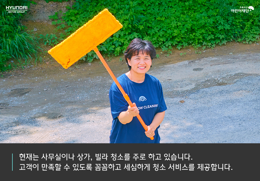 송해숙 씨는 사무실, 상가 등을 전문적으로 청소하는 업체를 운영하고 있습니다. 해숙 씨는 기프트카 캠페인 덕분에 경제적인 부담에서 벗어나 사업을 맘껏 펼치게 되었다고 말하는데요. 기프트카를 발판 삼아 많은 사람에게 기쁨을 전하는 청소 서비스 업체로 성장하고 싶다는 해숙 씨의 이야기를 들려 드립니다!