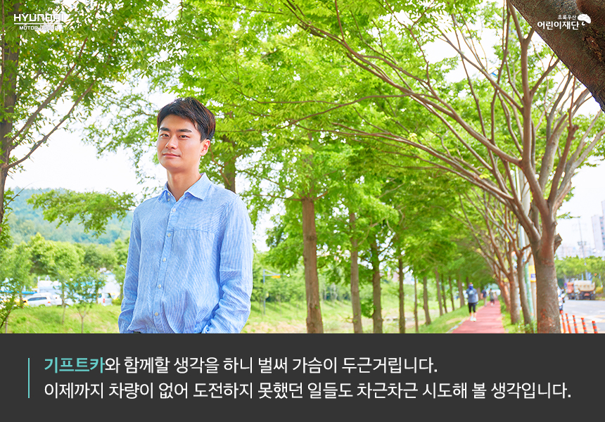 사실 기프트카 캠페인 TV 광고를 보면서 주인공이 돼야겠다는 생각과 저 광고에 나오는 성공모델이 되고 싶다는 꿈을 동시에 가졌었거든요. 차근차근 성실하게 하다 보면 언젠가 제가 기프트카 캠페인 광고 모델이 되는 날이 오지 않을까요? (웃음) 그날까지 기프트카와 함께 쉼 없이 달려보겠습니다.