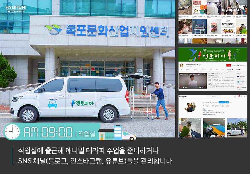 아이들을 대상으로 찾아가는 애니멀 테라피 수업을 운영하고 있습니다. 언제 어디든 빠르게 움직일 수 있는 나만의 차량이 생긴 이후 업무 효율성이 많이 높아졌어요. 이동 시간과 에너지를 절약한 만큼 여러 업무에 집중할 수 있게 되었거든요. 덕분에 애니멀 테라피 수업뿐만 아니라 앵무새 교육 컨설팅, 앵무새 훈련 용품 제작 판매까지 순조롭게 진행하고 있습니다.