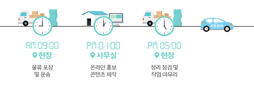 가끔은 당일 건으로 일이 들어오기도 합니다. 상시 기프트카와 함께하고 있으니 언제든 고객이 있는 곳으로 달려갈 수 있어요. 상황에 따라 당일 출장을 다녀오기도 합니다. 신속하고, 저렴하면서도 고품질 서비스를 제공하는 것이 사업 노하우랄까요?
