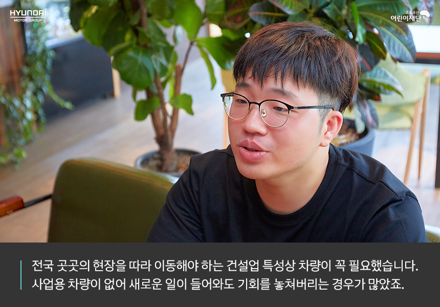 아버지와 함께 오랜 경력과 기술을 바탕으로 창업을 꿈꿨지만, 사업용 차량이 없어 어려움을 겪고 있었습니다. 전국 곳곳의 현장을 따라 이동해야 하는 건설업 특성상 차량이 꼭 필요했는데요. 어쩔 수 없이 다른 업체의 차량을 빌려 사용하다 보니 불편한 점이 한두 가지가 아니었습니다. 무엇보다 유연하게 이동 스케줄을 잡기가 어려워 일정에 차질이 생기곤 했습니다. 게다가 새로운 일이 들어와도 급하게 차량을 구하지 못해 기회를 놓쳐버리는 경우도 많았죠. 이런 일이 반복될수록 저만의 차량에 대한 간절함이 나날이 커졌습니다. 그렇게 차량으로 고민이 깊어 가던 중, 기프트카 캠페인을 알게 되어 희망을 품고 지원하게 되었습니다.