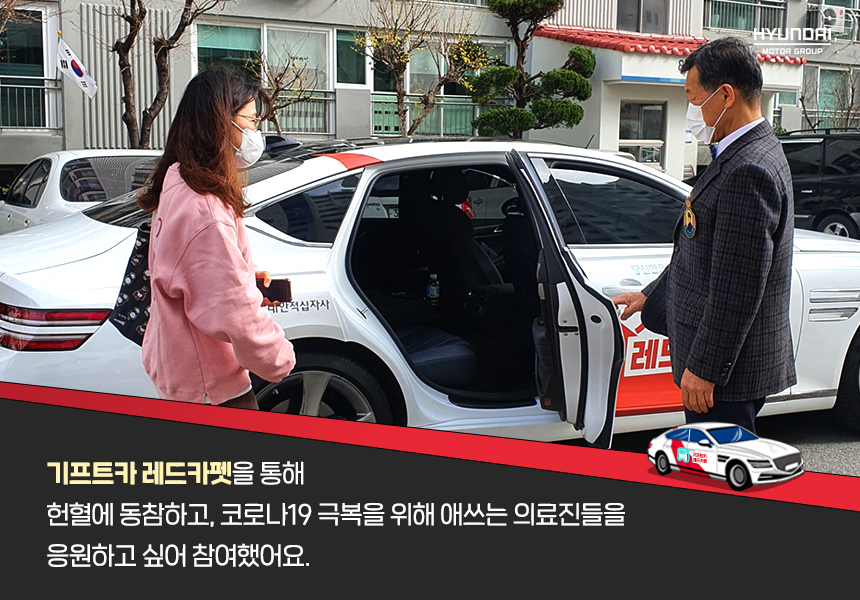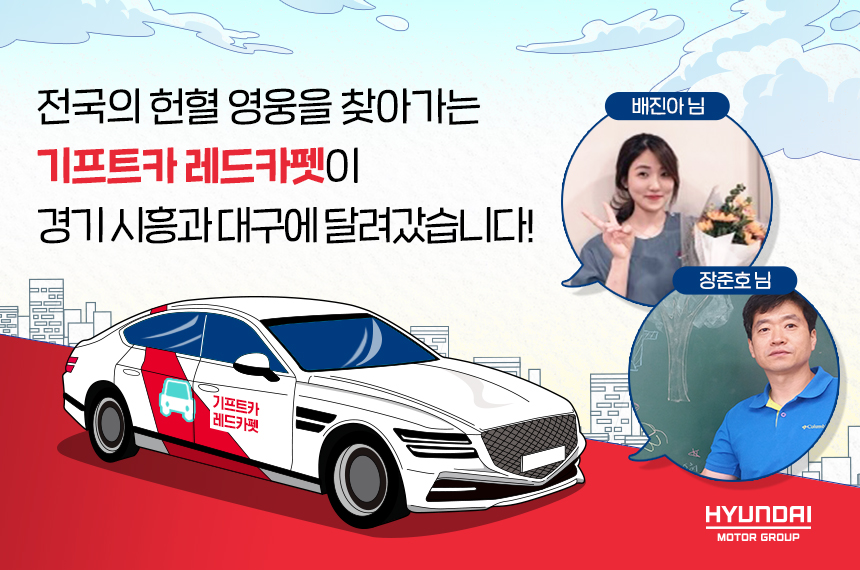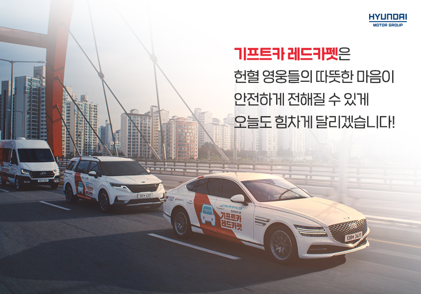 지난해 11월, 코로나19로 혈액량 수급이 어려워진 사회에 따뜻한 희망을 전하고자 시작된 기프트카 레드카펫 캠페인은 다가오는 6월 30일까지 운영됩니다. 신청을 고민 중인 분들이 있다면 망설이지 말고 사연을 보내주세요. 앞으로 남은 기간 동안 많은 참여와 응원을 부탁드립니다! 기프트카 레드카펫은 헌혈 영웅들의 따뜻한 마음이 안전하게 전해질 수 있게 오늘도 힘차게 달리겠습니다!