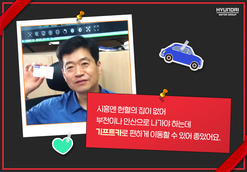 시흥엔 헌혈의 집이 없어 부천이나 안산으로 나가야 하는데 기프트카로 편하게 이동할 수 있어 좋았어요. 기사님도 무척 친절하셨고요. 함께했던 동료 선생님들 모두 특별한 경험이었다며 좋아했죠.