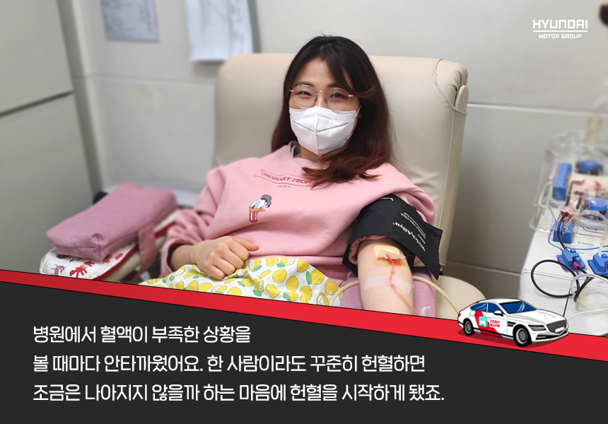 사회에 봉사할 수 있는 일을 고민하다 헌혈을 시작하게 됐어요. 한 장의 헌혈증서로도 여러 사람을 도울 수 있어 뜻깊더라고요.
